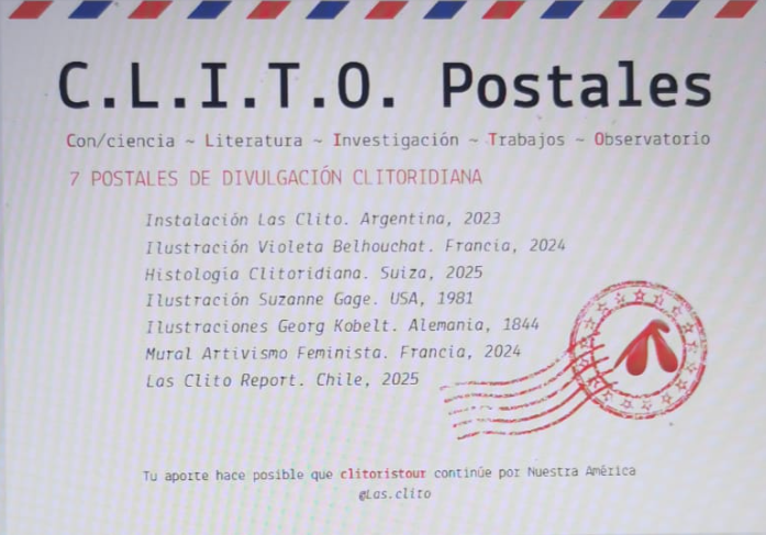 Un set de 7 postales de divulgación clitoridiana, listas para educar, regalar y enviar. Cada postal ilustra un hito en la historia de la clitorología y el activismo, incluyendo: Instalación Las Clito, Argentina, 2023 Ilustración Violeta Belhouchat, Francia, 2024 Histología Clitoridiana, Suiza, 2025 Ilustración Susanne Gago, USA, 1980 Ilustraciones Georg Kobelt, Alemania, 1844 Mural Activismo […]